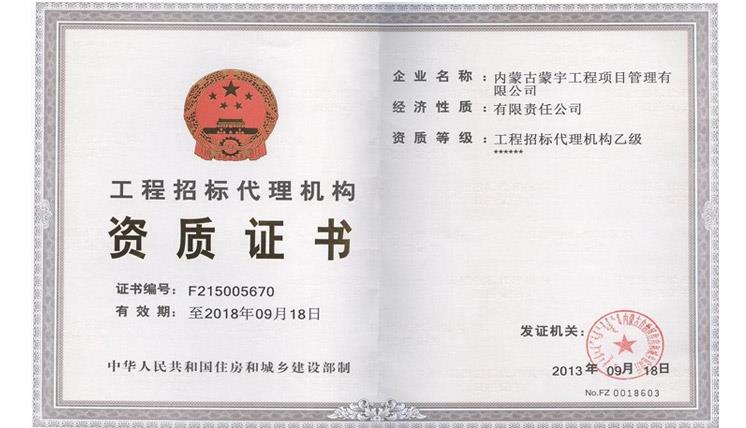 招標代理資質證書
